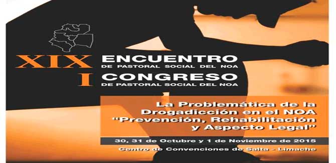 «La problemática de la drogadicción: prevención, rehabilitación y aspecto legal», será el tema central del 1º Congreso de Pastoral Social del Noroeste Argentino (NOA) que se realizará los días 30 y 31 de octubre y el Primer de noviembre en el Centro de Convenciones de Limache, de la ciudad de Salta.